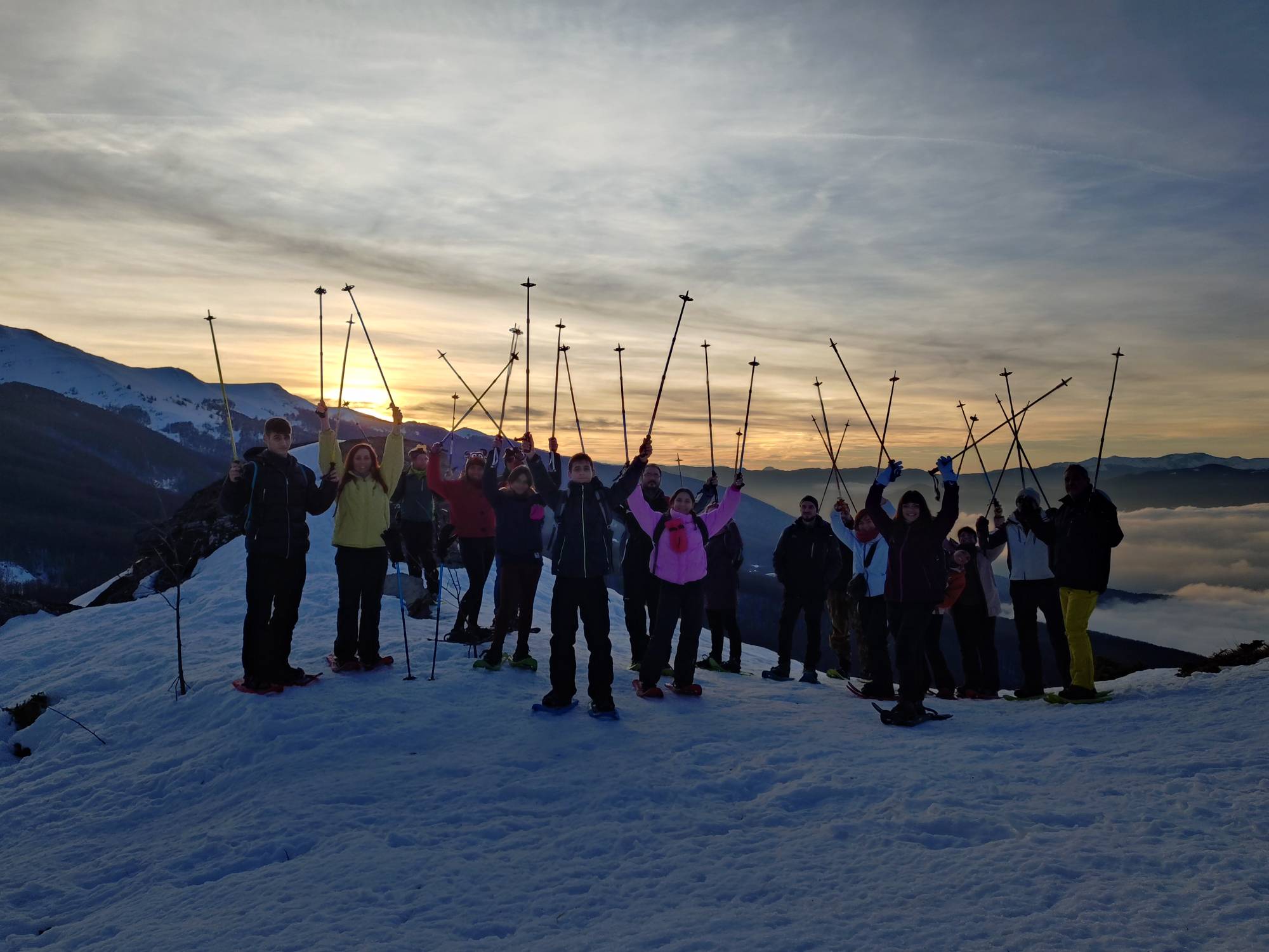 Ritrovo entro le ore 15.30 per la distribuzione delle ciaspole. Salita attraverso il bosco fino al Passo della Croce Arcana. Arrivo al Passo al tramonto, la vista spazia dai crinali innevati, con il Cimone che fa da Cornice, scendendo fino al mare sotto le luci calde del tramonto. Rientro a Capanno Tassoni sotto il cielo notturno ricco di stelle. Cena in rifugio possibile previa prenotazione